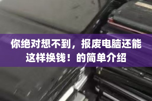 1、2回收方式多很多平台可能只能够选择邮寄回收,但是,正二品除你绝对想不到,报废电脑还能这样换钱!了可以选择邮寄方式以外,还可以通过上门回收方式来回收产品,上门回收现场就会对产品进行检测和估价,所以,对于很多担心邮寄回收效果不好的朋友而言,选择这样的回收方式无疑是不错的3结算快在体验中发现正二品的结算非常快,如果是上。